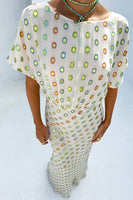 Our Elodie silhouette is perfect for spring/summer styling and ideal for wedding guest season! The gorgeous multicoloured circle print, in a stunning metallic gold lurex thread, is woven into the fabric, adding an element of texture to the otherwise simple structure. With a loose, V-neck blouson style top that flows into a fitted skirt, that flatters your curves. Designed to be worn front and back, for extra coverage, this dress brings feel good dressing straight to your wardrobe!